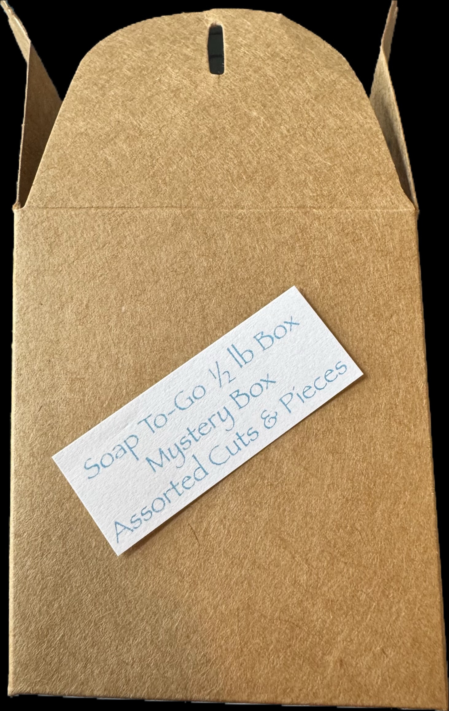 Discover a little surprise in every box! Our Soap To-Go ยฝ lb Mystery Box is packed with an assortment of handcrafted goat milk soap cuts and end pieces โ the same luxurious bars we sell individually, just in fun and imperfect shapes. Itโs the perfect way to sample a variety of scents, stock guest bathrooms, or enjoy everyday soap at a fantastic value.